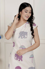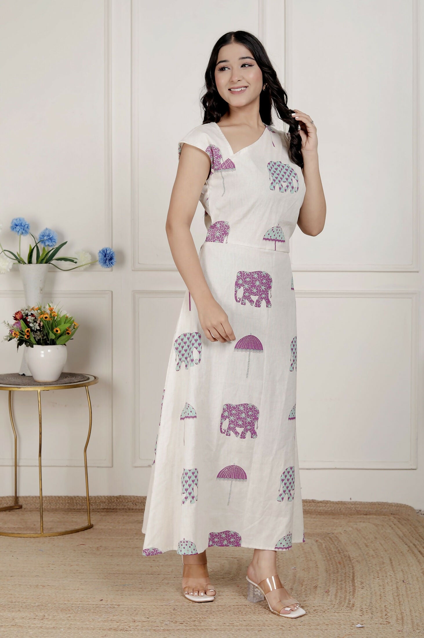 Miravan Womens Off-White Animal Printed Asymmetric Neck A-Line Maxi DressAbout The productIntroducing the Cotton Flex Cotton Dress - perfect for an...