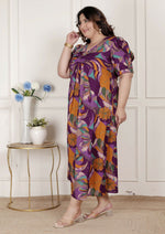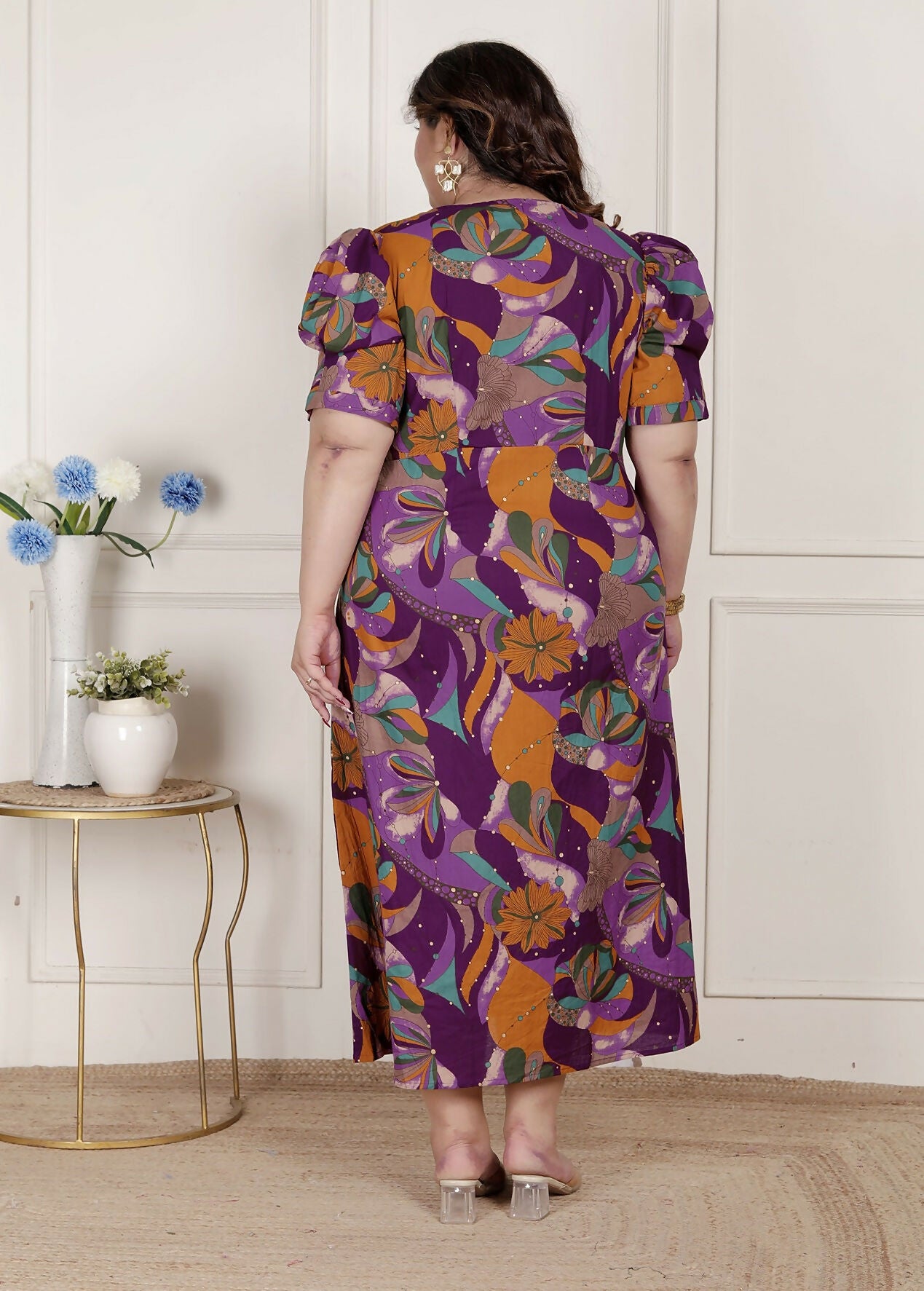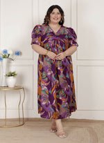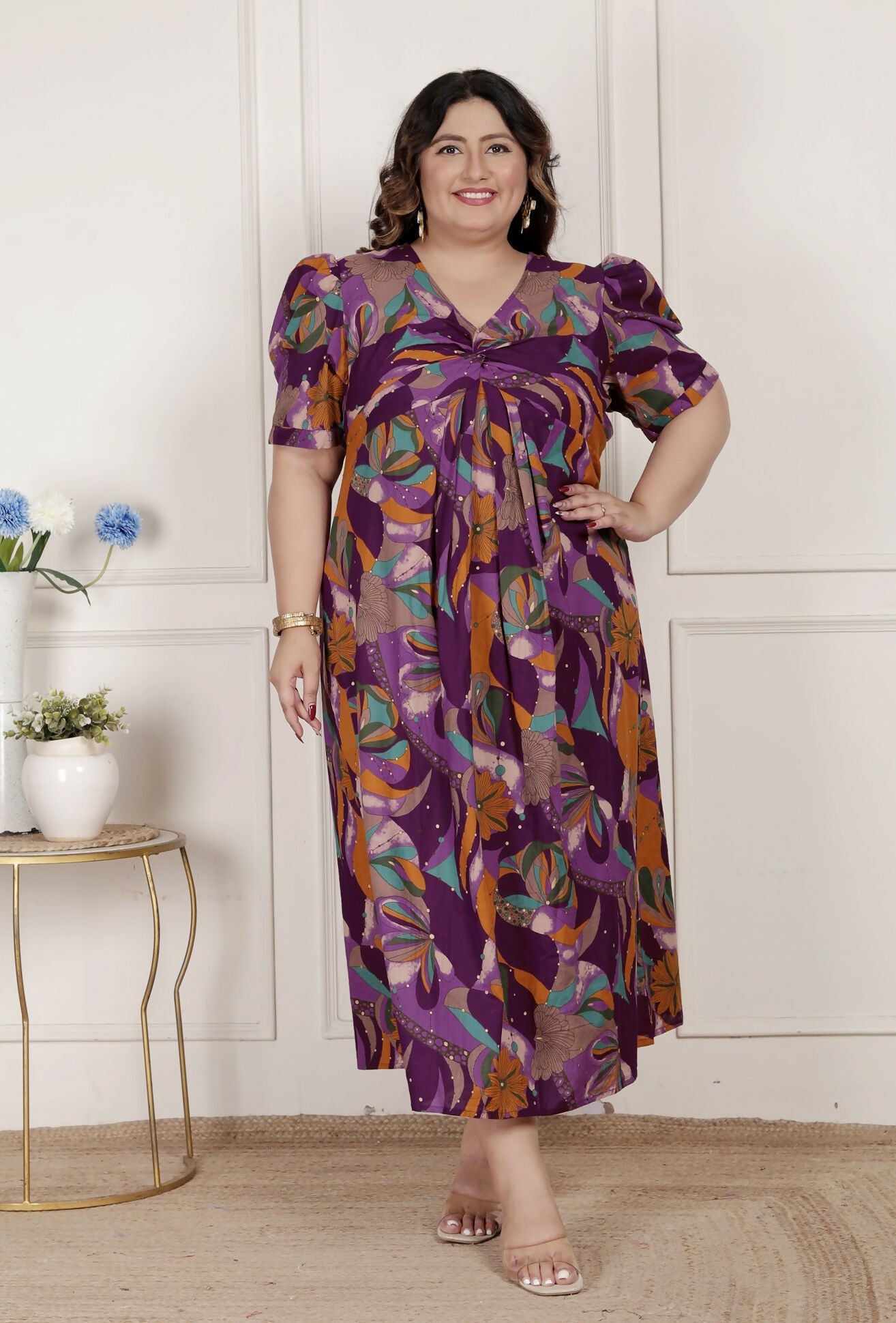 Miravan Womens Plus Size Floral Print Puff Sleeve Pure Cotton Magenta Butterfly Maxi DressAbout The productA Very beautiful floral print magenta Ha...