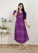 Miravan Womens Purple Bandhni Printed A-Line Maxi DressAbout The productStay stylish with this Purple dress from miravan. Made from high quality co...