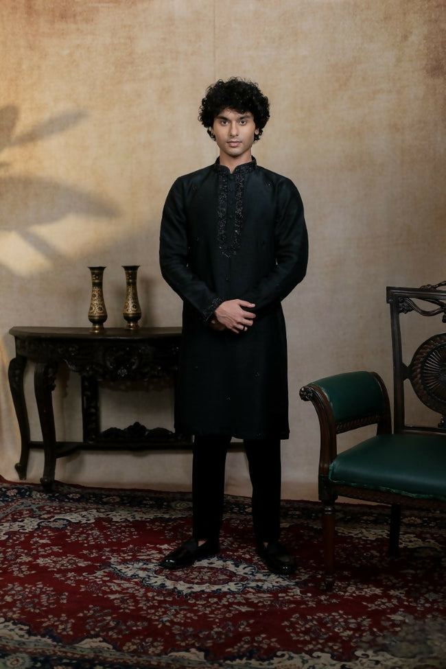 Black Mirror Work Kurta by Hilo Design