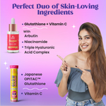 • The perfect bridal-glowing combination for achieving radiant and glowing skin: a powerful glutathione supplement and a Korean brightening serum enriched with glutathione and vitamin C. When used together, these two products create a synergistic duo that works wonders for your skin.