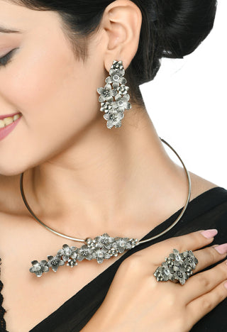 Mominos Fashion Johar Kamal Silver-Plated Brass Finish Floral Desgin Choker For Women