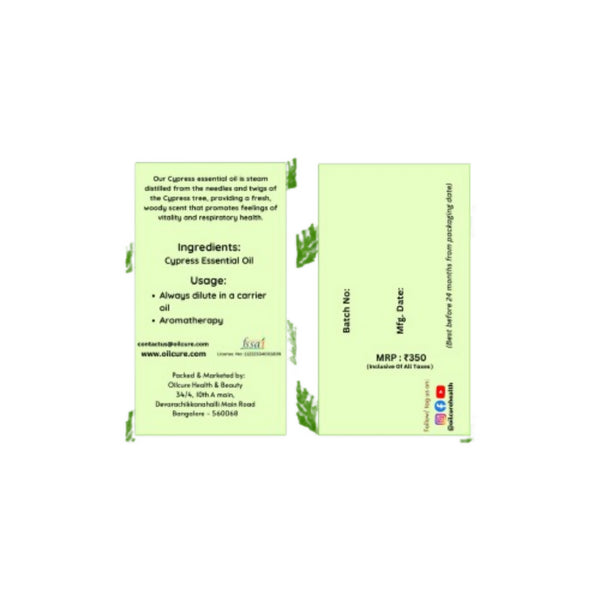 Oilcure Cypress Essential OilAbout The Product: Cypress Oil is steam-distilled from the needles and twigs of Cupressus sempervirens. It features a ...