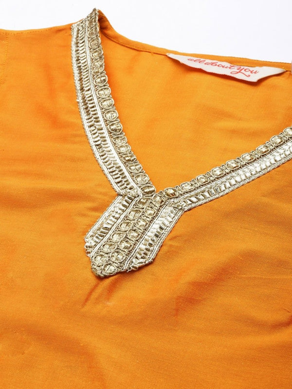 All About You Women Mustard Yellow Ethnic Motifs Embroidered Gotta Patti Kurta with Palazzos & With Dupatta