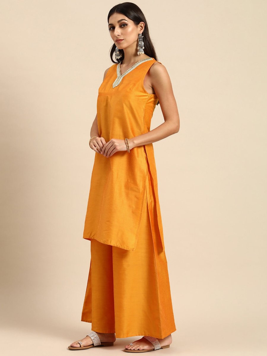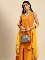 Mustard yellow embroidered Kurta with Palazzos with dupatta