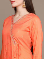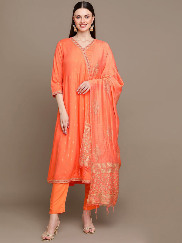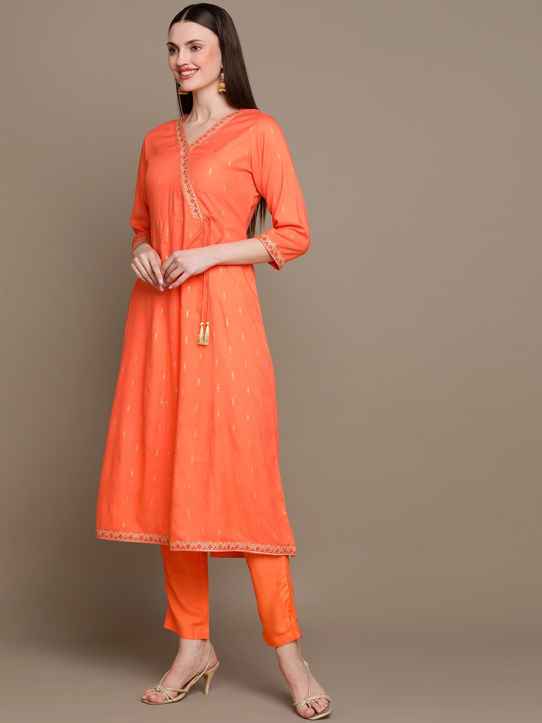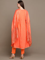 HERE&NOW Ethnic Motifs Printed Thread Work Angrakha Kurta with Palazzos & Dupatta Product Details Orange printed Kurta with Trousers &am...