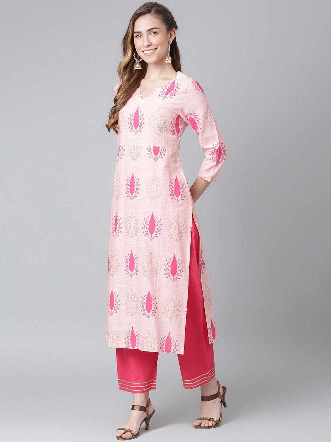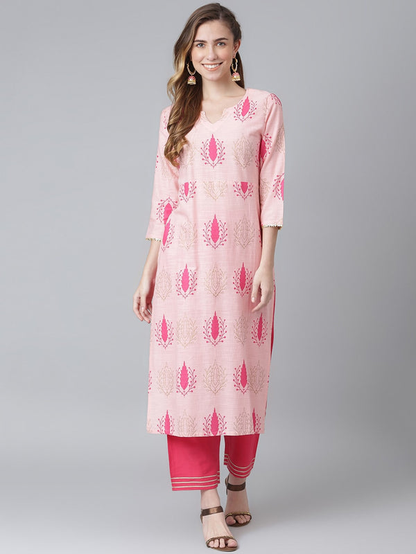 Pink and gold-toned printed Kurta with Palazzos