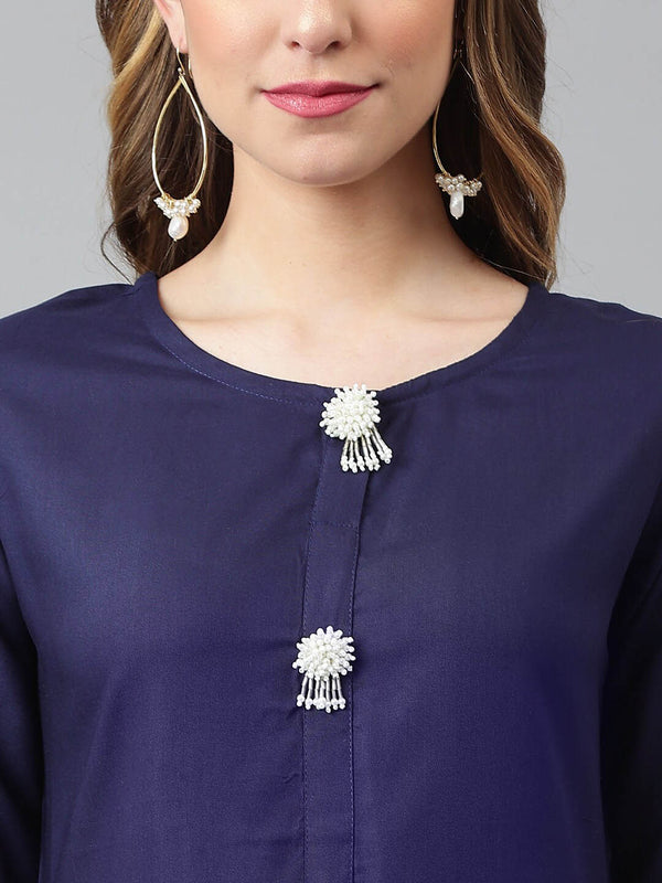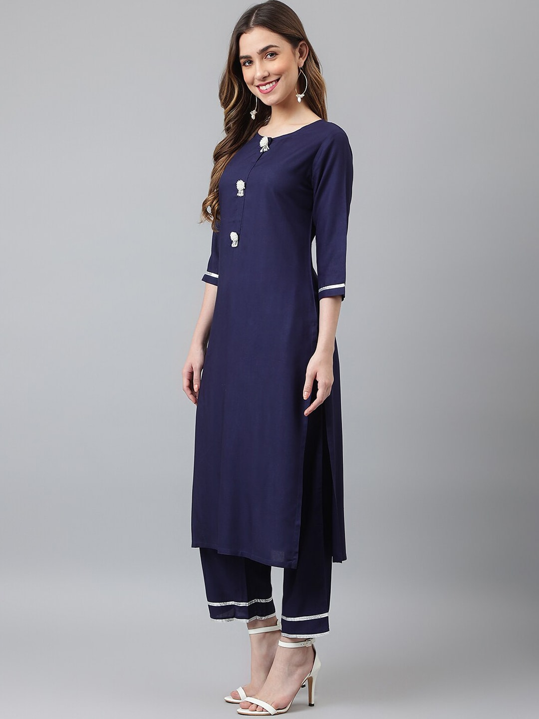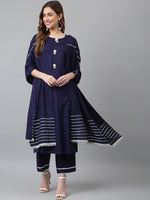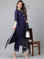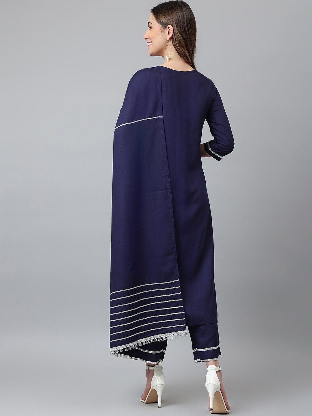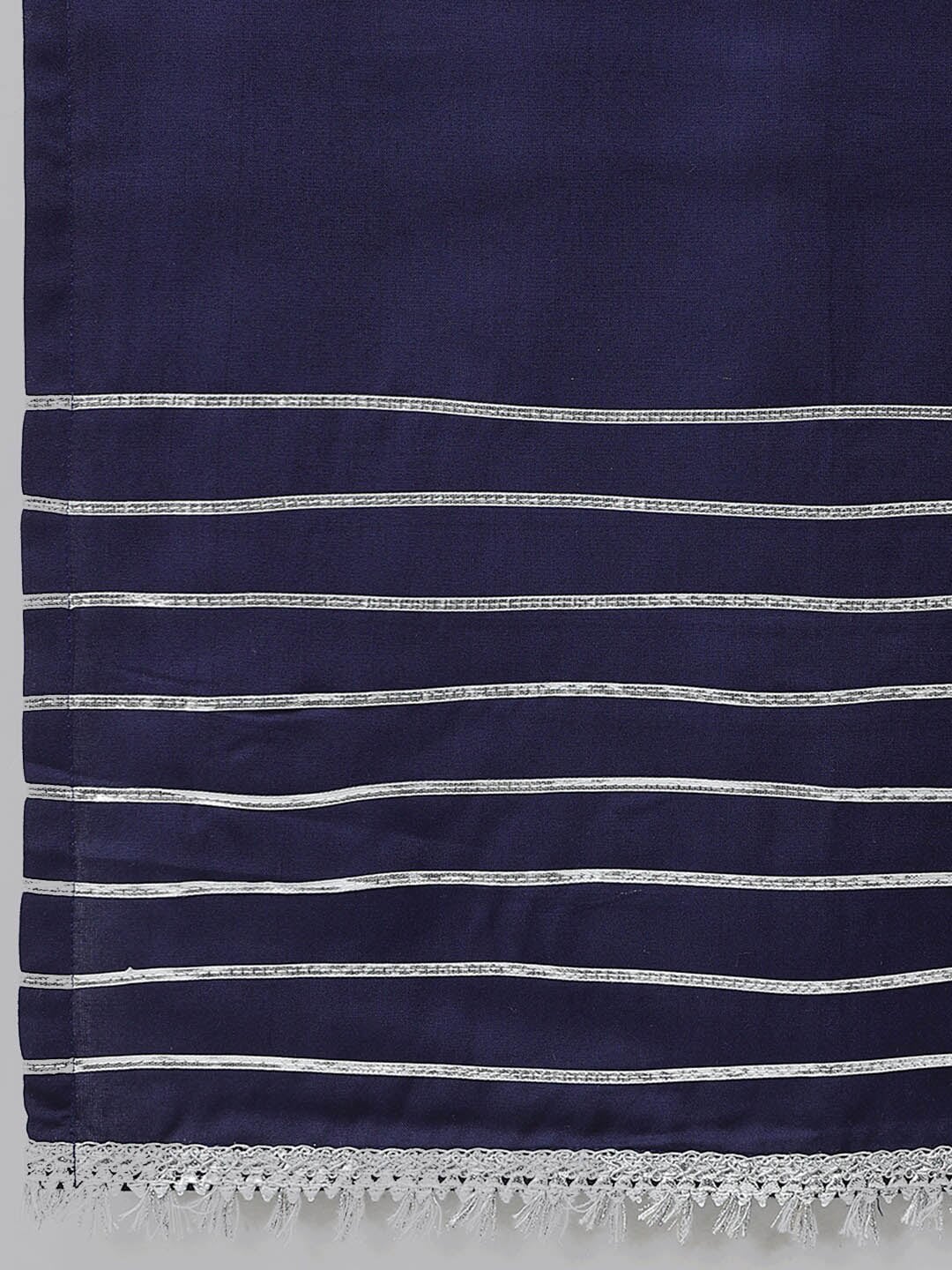 Khushal K Kurta with Palazzos & With Dupatta Product Details Navy blue self design Kurta with Palazzos with dupatta Kurta design: Strip...
