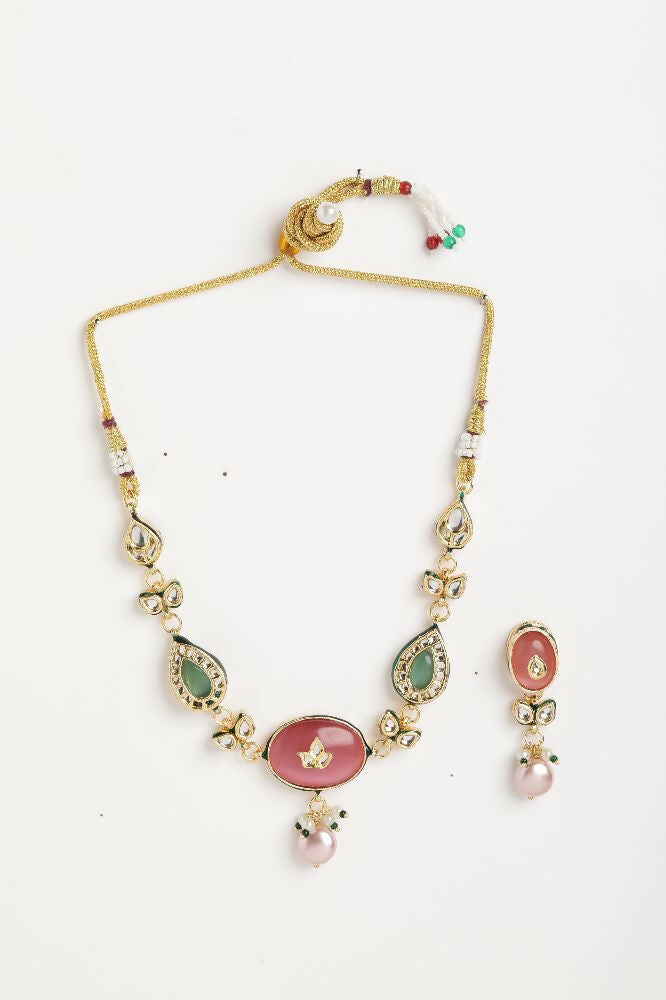 Nuyug 22K Gold Plated Radiant Rose Stone Kundan Necklace