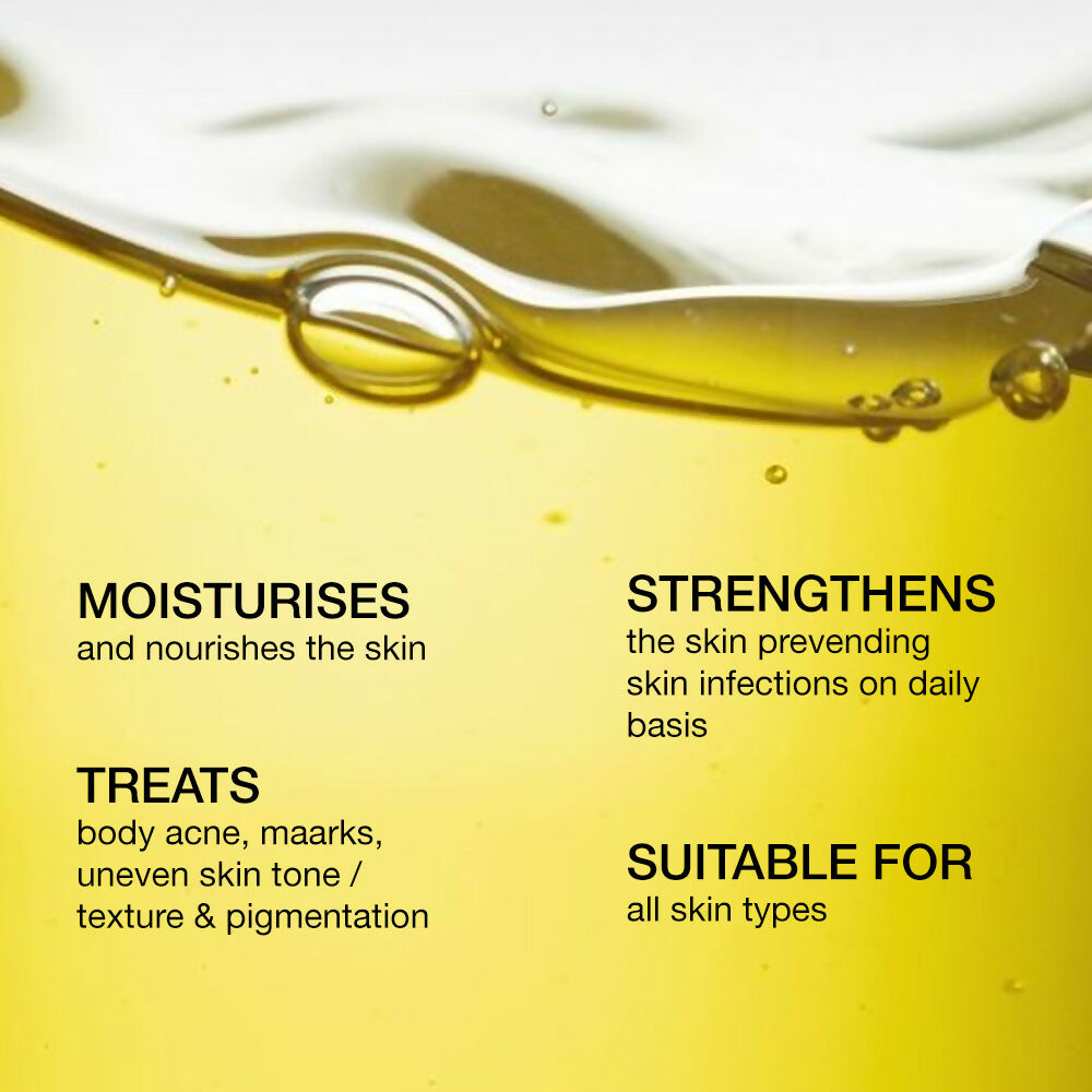 • Skog Cedarwood/ Petitgrain Body Oil for glowing skin is perfect for daily use. This light weight formulation absorbs easily into the skin giving it an instant long lasting moisturisation as well as maintains the oil level. This body oil for acne skin is a combination of various high quality oils which help to revitalise the skin and treat pigmentation if any. The anti-inflammatory and antimicrobial properties treat any body acne, skin inflammation especially in sensitive skin and prevents any skin infections on a daily basis. Best Body Oil for Men&Women