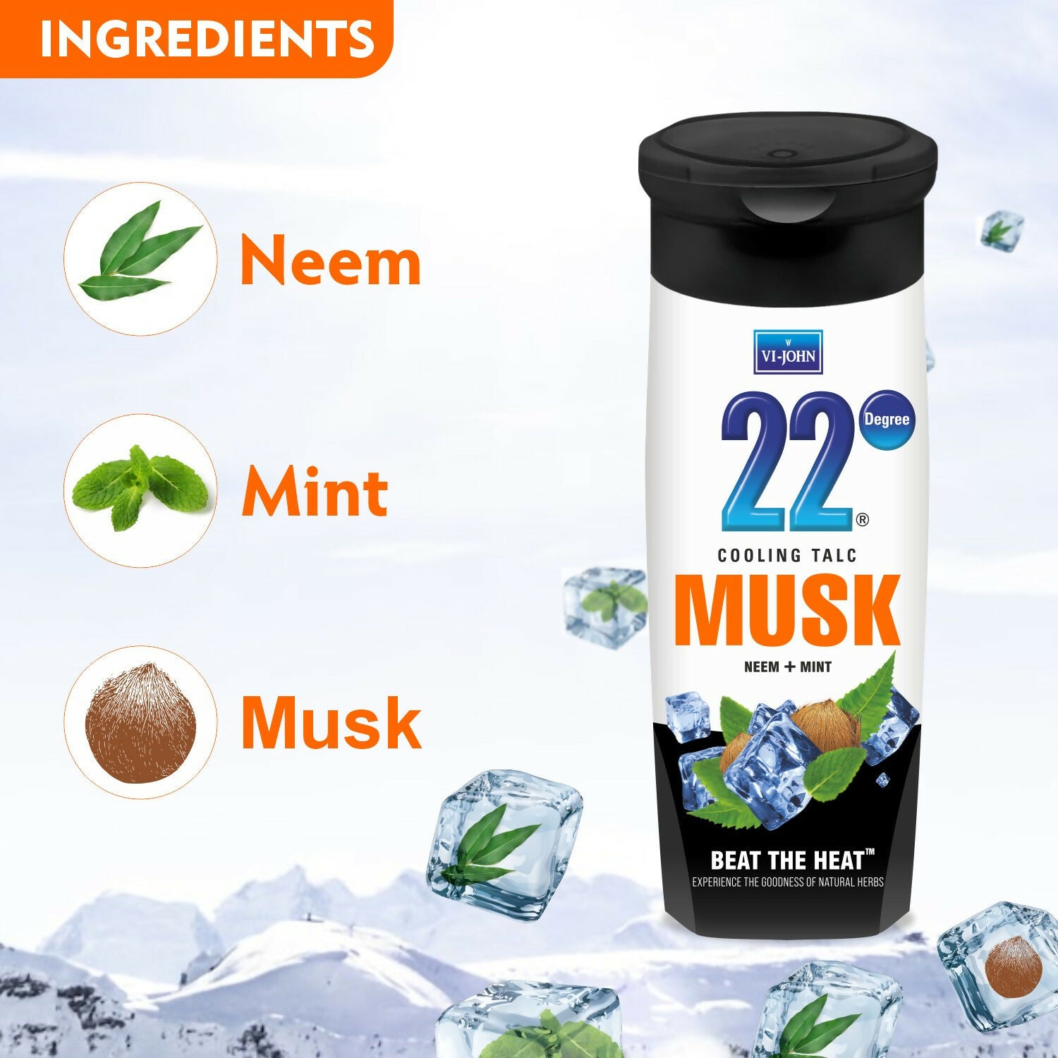 VI-JOHN 22 Degree Cooling Talc Beat the Heat Musk, Neem and Mint22 Degree Classic now stay cool and refreshed 24*7 with 22-degree Talc. With a bala...
