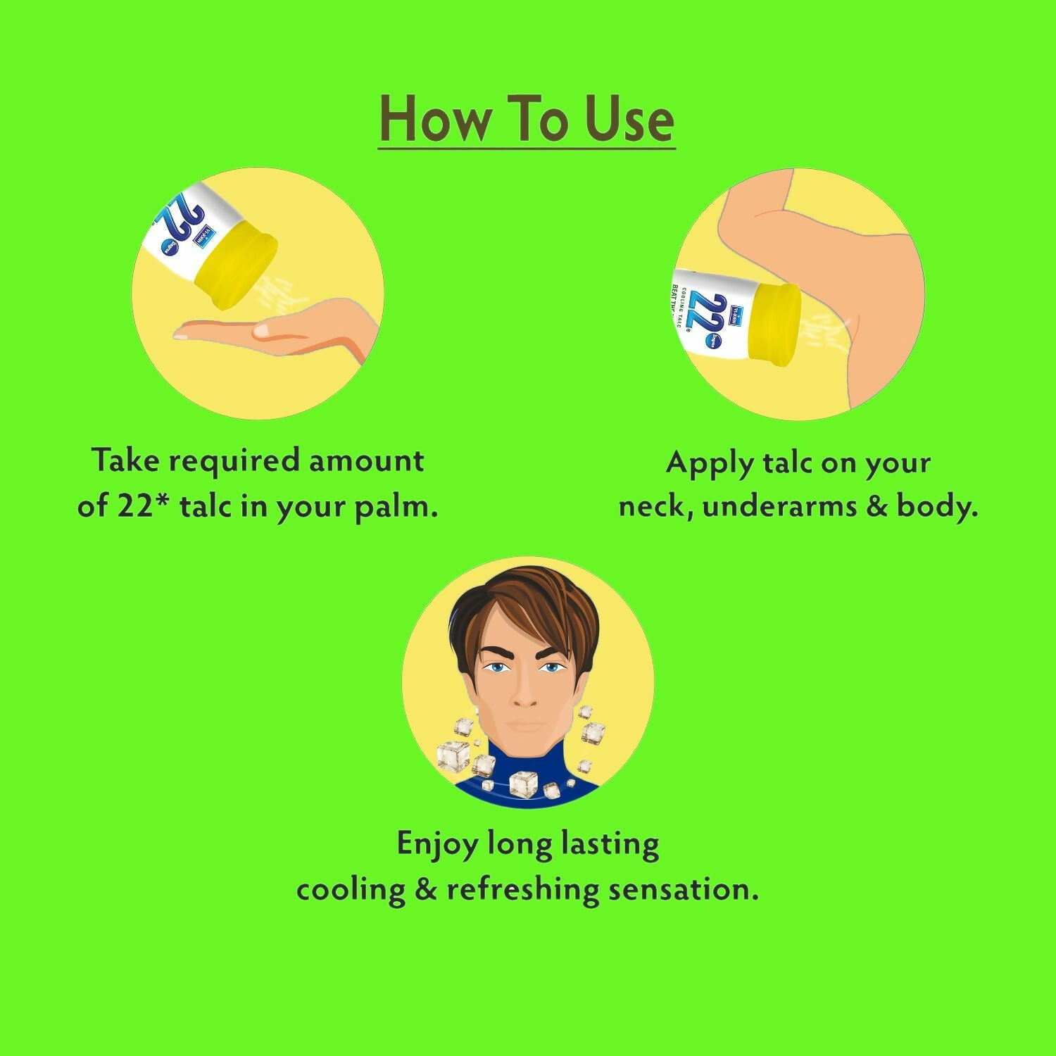 VI-JOHN 22 Degree Active Herbs Now stay cool and refreshed 24x7 with 22 Degree Talc. With a balanced formulation of 2 healing herbs, it gives you instant relief from skin rashes and helps reduce fatigue at the end of the day. Packed with the benefits of natural ingredients like: