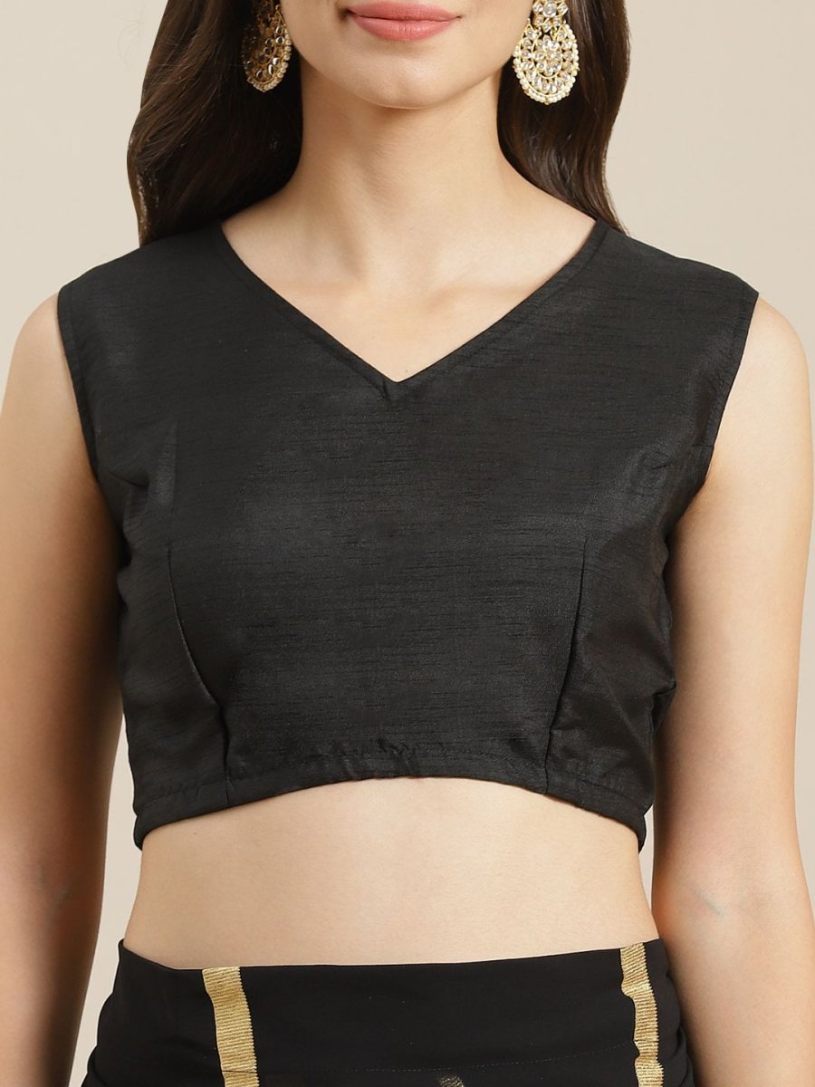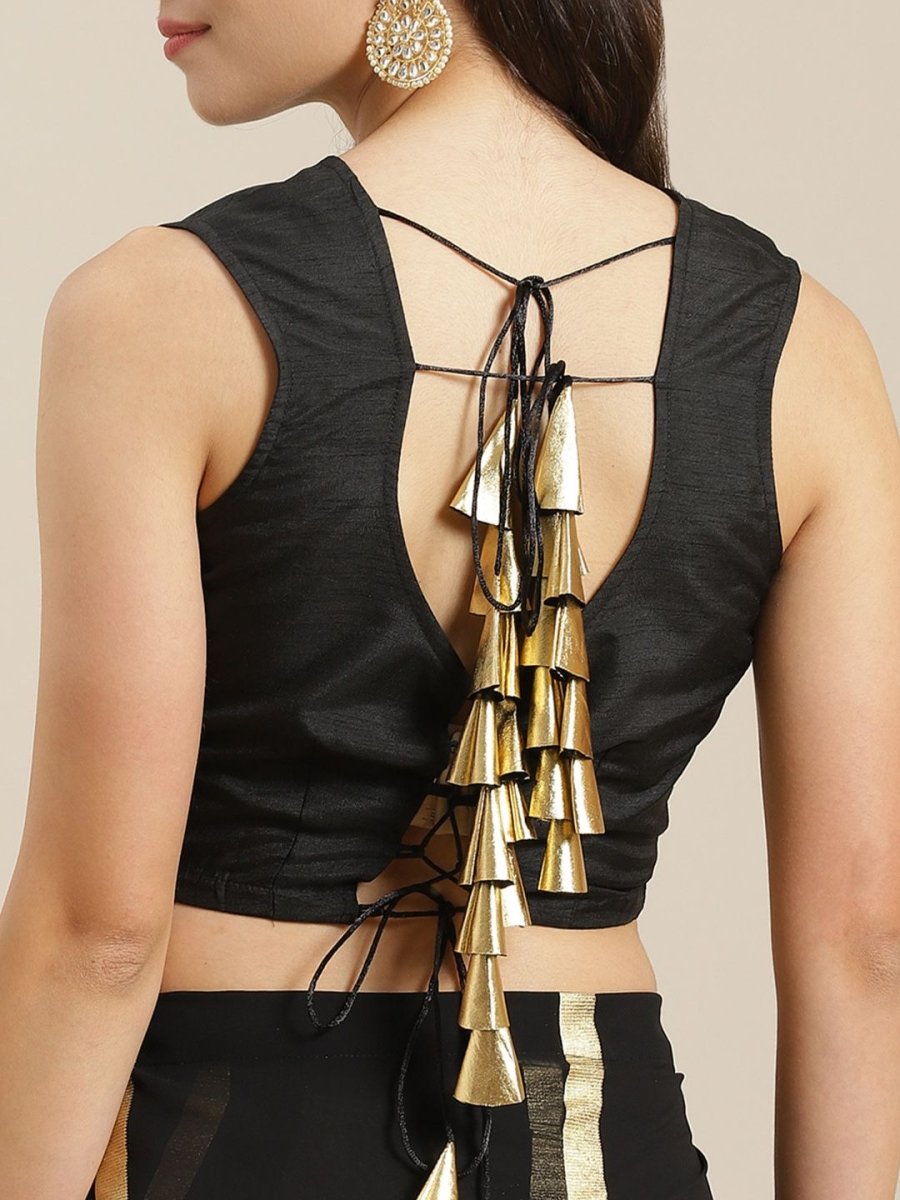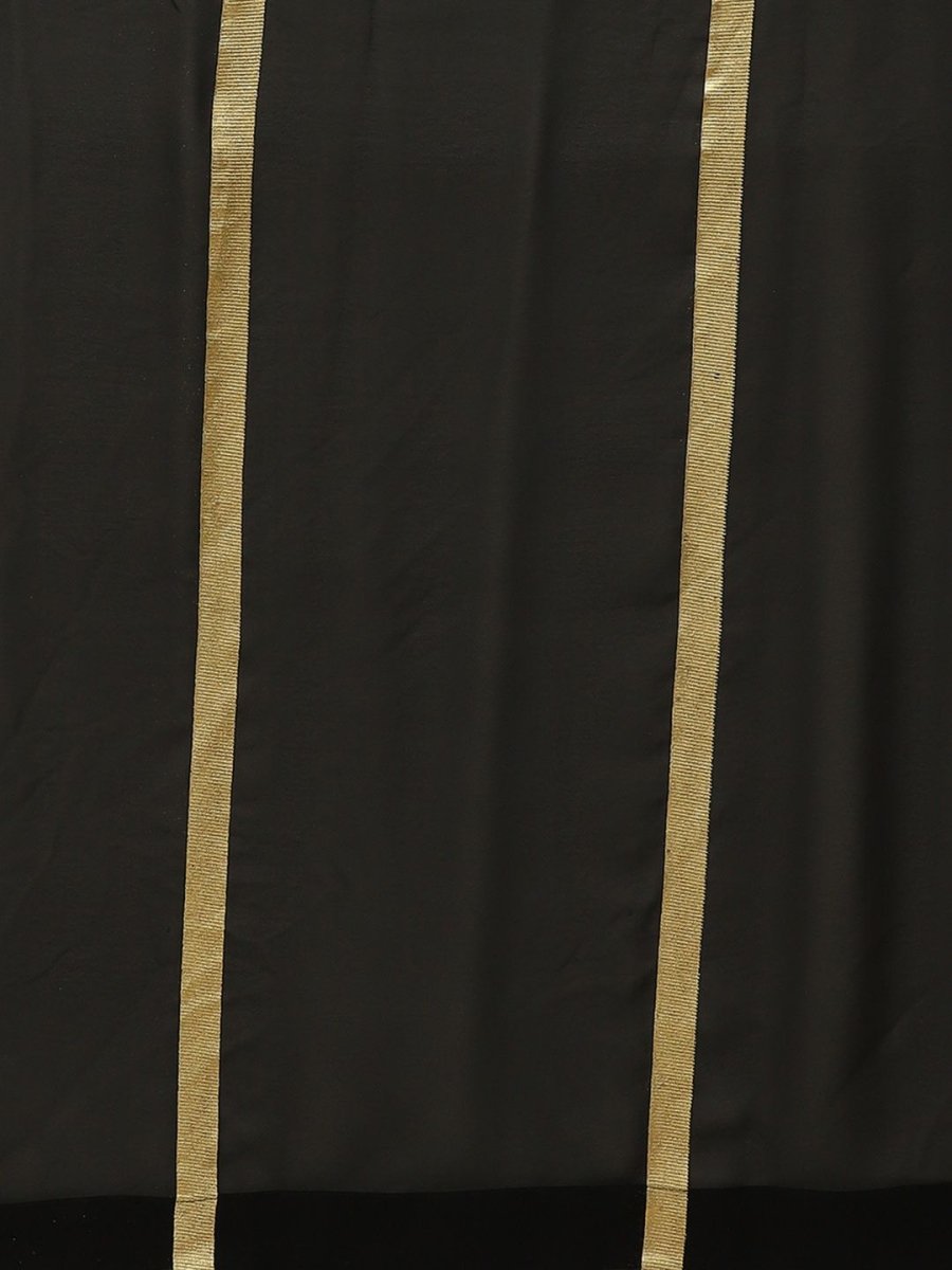 Ahalyaa Women's Black Georgette Gold Print Ready to Wear Saree - XS