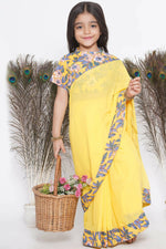 Little Bansi Floral Print Ready To Wear Saree And Floral Blouse - Yellow Additional Information: Color: Yellow Gender: Girl Material Info/Up...