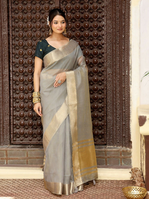 Astita Grey Cotton SareeProduct Details: Saree Fabric : Cotton Saree Color : Gray Blouse Fabric : Cotton Blouse Color : GreenLegal Disclaimer : Pro...