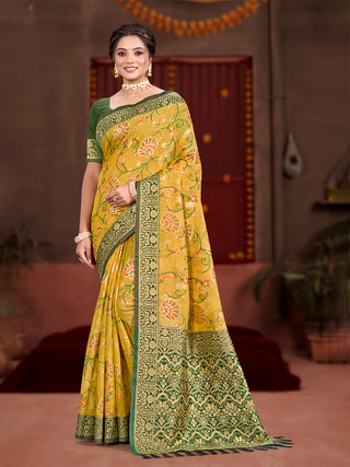 Exclusive Collection Golden Olive Beautiful Tissue Benarasi Saree