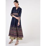 Cheera Women's Hand Block Print Ghagra Style Anarkali Kurta (CH036K) Online: Colour: Blue and Gold Size: XS, S, M, L, XL, XXL Washing and care ins...