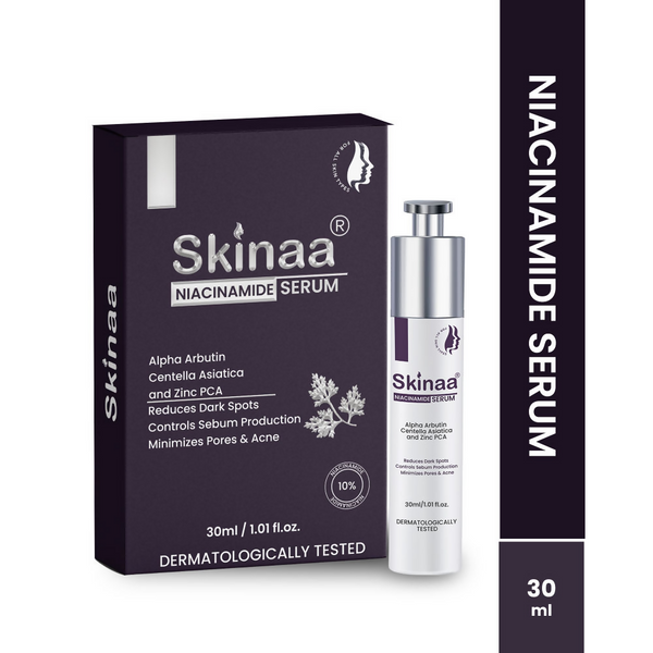 Skinaa Niacinamide Serum is specially crafted for those with oily and acne-prone skin, offering a simple yet effective solution to achieve a clearer and more radiant complexion. This lightweight serum combines the power of Niacinamide, Alpha Arbutin, Centella Asiatica, and Zinc PCA to tackle common skin concerns. Niacinamide helps control excess oil, reduce acne spots, and minimize the appearance of open pores, leaving your skin smoother and more refined.