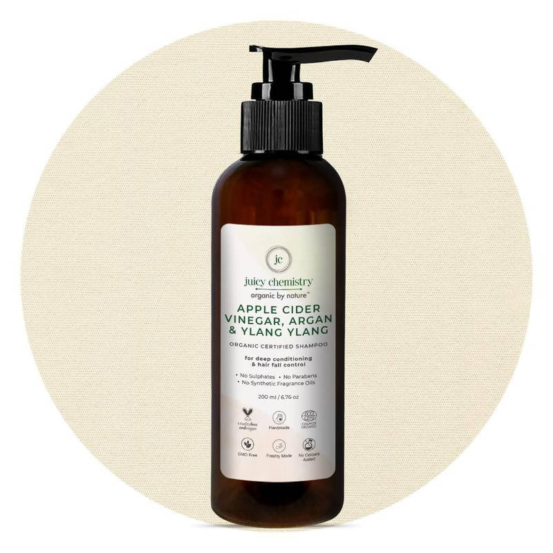 Juicy Chemistry Apple Cider Vinegar, Argan & Ylang Ylang Shampoo 200 ml: Organic Certified Shampoo Helps Deeply Conditions & Controls Hair-...