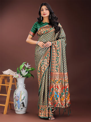 Astita Dark Green Banarasi Silk Saree with Zari Weaving - A Timeless Tale of Elegance