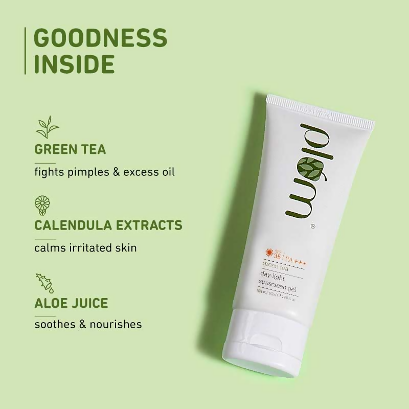 Plum Green Tea Day-Light Broad Spectrum Sunscreen Gel SPF 35 PA+++ UVA/BIngredients: Green Tea Extracts: Best known for its potent antioxidant prop...