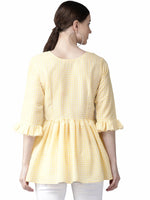 Improve your personal style with a brand new three-quarter sleeve top designed by Ahalyaa. Match this yellow piece with a pair of slim jeans and easy loafers for a fashionable date outfit.