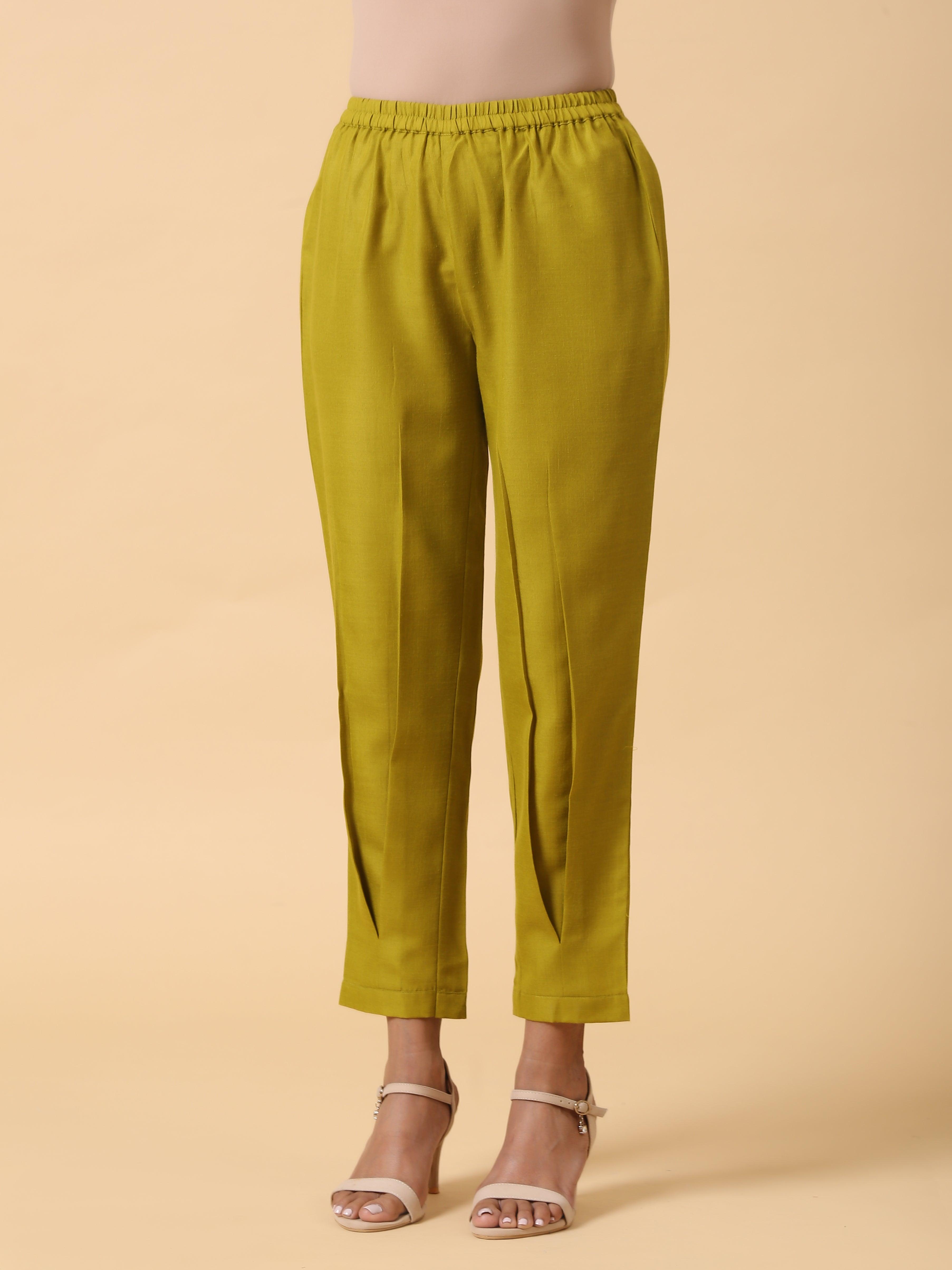 trueBrowns Cotton Linen Lime Green Pleated Co-Ord Set - Distacart