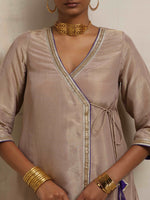trueBrowns Lilac Tissue Angrakha Kurta Set