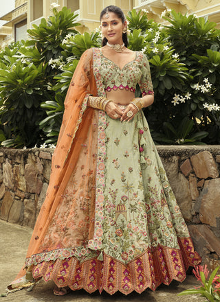 Vegaa Fashion Light Green Chinon Silk Embroidered Lehenga Style Suit