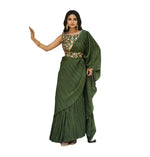 Vamika Olive Green Chinon Half Side Crush Work Saree