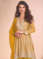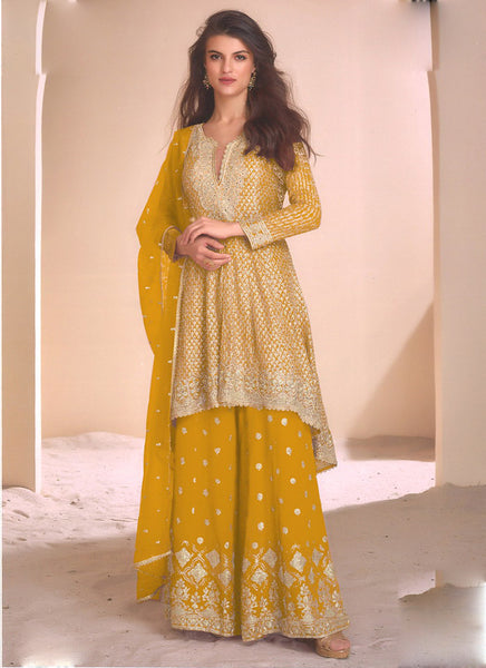 Vegaa Fashion Yellow Georgette Embroidered Palazzo Suit
