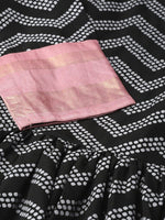 Ahalyaa Women Black & White Polka Dots Chevron Khari Printed Kurta with Trousers & Dupatta