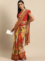 Ahalyaa Women's Traditional Semi Stitch Saree - Yellow Prominent Colour: Yellow Second Prominent Colour: Red Third Prominent Colour: Gold Fashi...
