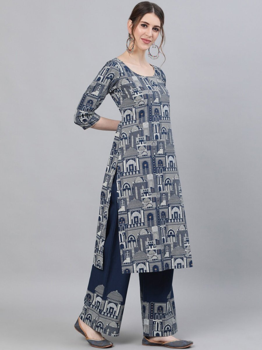 Aks Ethnic Motifs Printed Pure Cotton Kurta With Palazzos Product Details Blue printed Kurta with PalazzosKurta design: Ethnic motifs printed ...