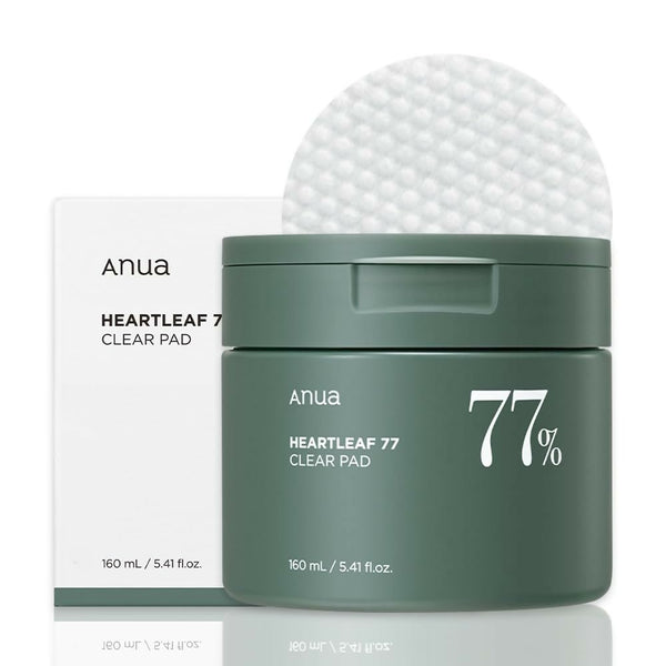 • The ANUA Heartleaf 77% Clear Pad is your solution for clear, blemish-free skin. These pads are specially formulated with heartleaf extract to calm and soothe the skin, as well as salicylic acid to help clear and prevent acne breakouts. With 77% heartleaf extract, these pads are gentle yet effective in maintaining clear and healthy skin.