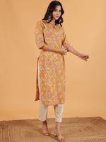 Aramya Straight Linen Cotton Paisley Print Women's Kurta - YellowExperience unmatched comfort and style with our Perfect Fit Kurta made using premi...