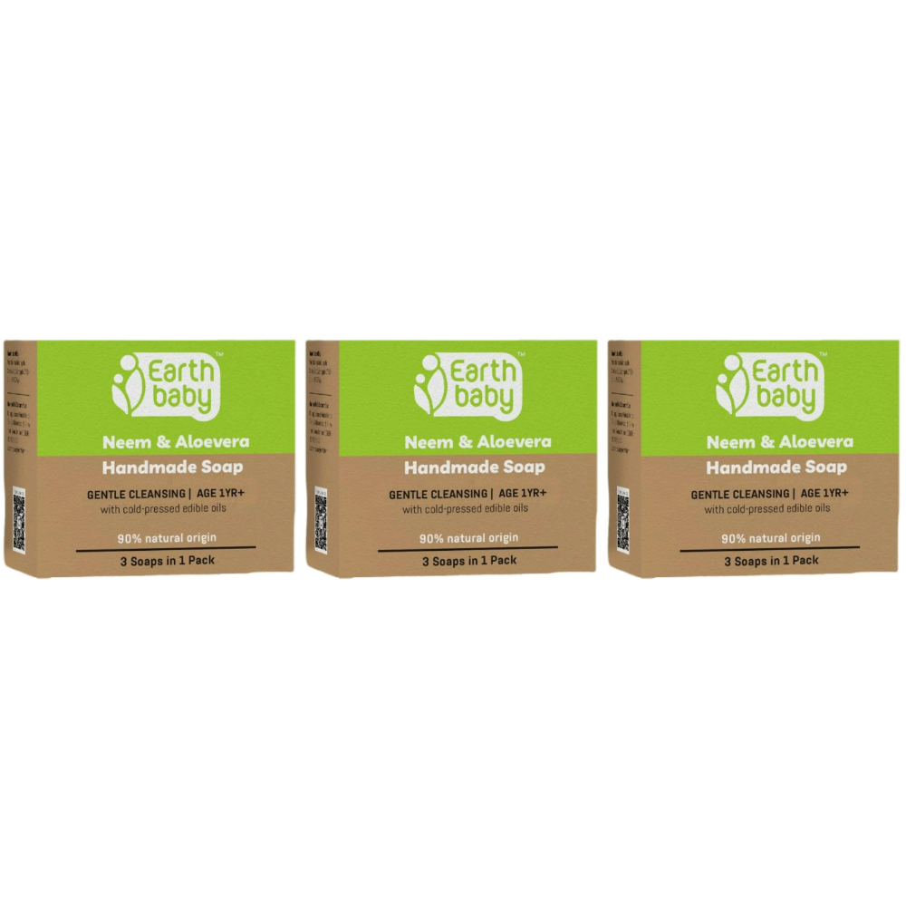 Earthbaby Handmade Neem & Aloevera Bath Soap 90% Natural Origin - 100 gm - Pack of 3