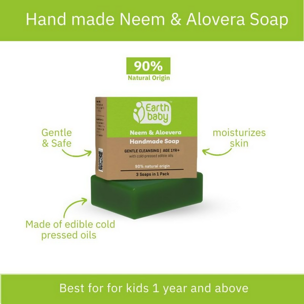 Earthbaby Handmade Neem & Aloevera Bath Soap 90% Natural Origin