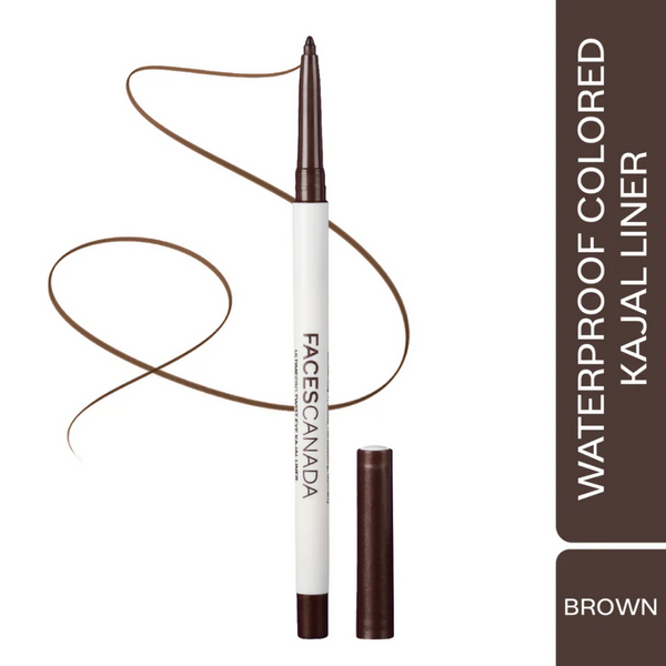 A high-impact water-proof eye pencil Faces Canada Twist Eye Kajal Liner comes in 4 matte and metallic shades for the effortless eye look. Dual application, on the waterline and the upper lid, this smudge-proof eyeliner won't budge until you want it to. The Twist Eye Kajal Liner's transfer-proof and fade-proof formula keeps the intense colour locked down for 24 hours. A smart combination of Carnauba Wax and ultra soft polymers render it a soft consistency, to help you achieve that look you've been aiming for. Packed into a convenient retractable format, it glides on in a smooth flick of the wrist, no dragging, pulling, or having to retrace the steps.