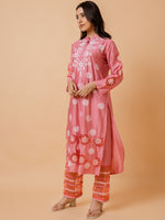 HOUSE OF KARI Ethnic Motifs Embroidered Chikankari Straight Chanderi Silk Kurta Product Details Colour: pink & white? Ethnic motifs embroid...