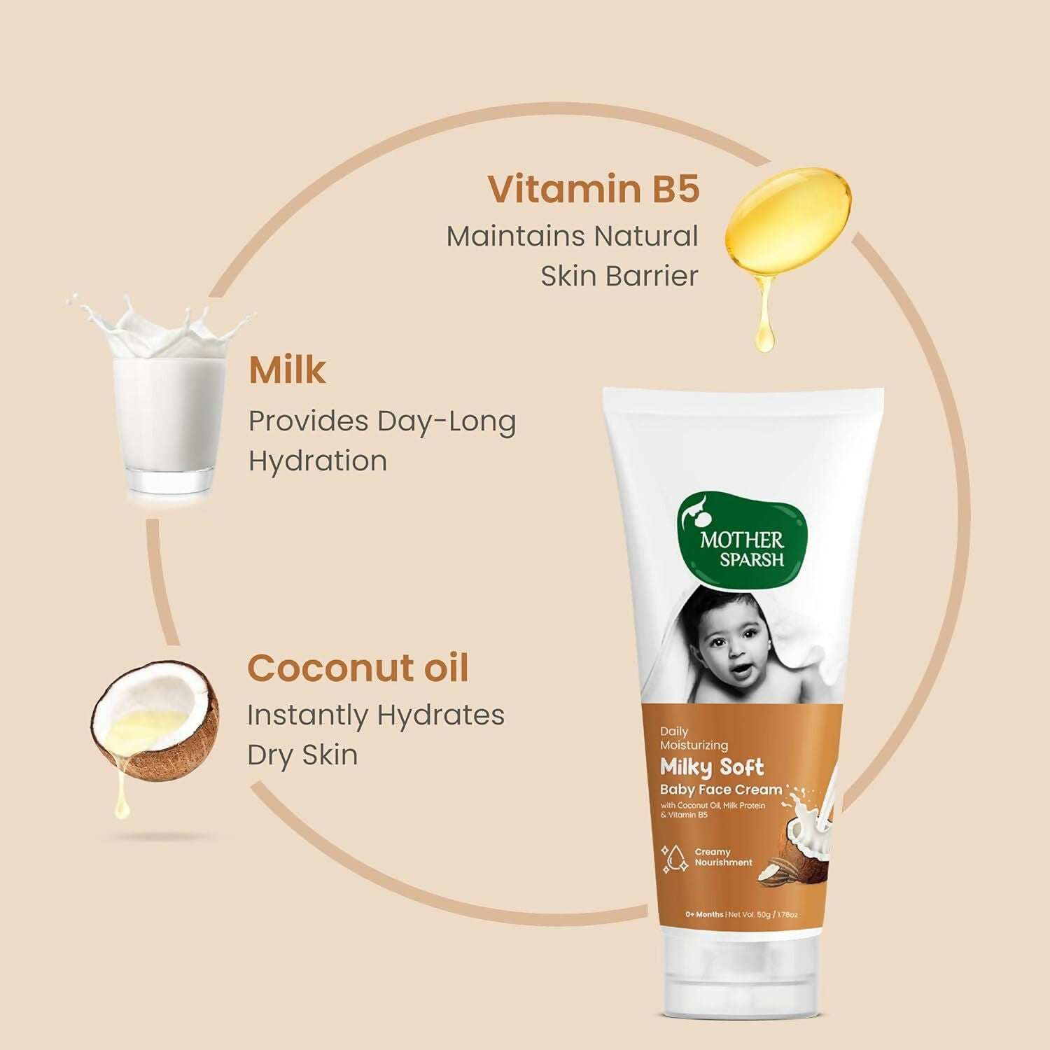 Mother Sparsh Milky Soft Baby Face Cream With Coconut Oil, Milk Protein & Vitamin B5, Non Sticky Baby Cream Prevents Dryness