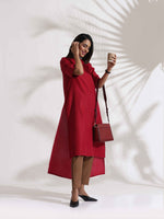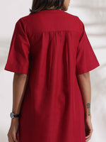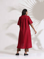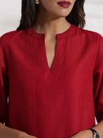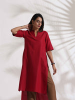 trueBrowns Maroon Slub Highslit Kurta Set - S