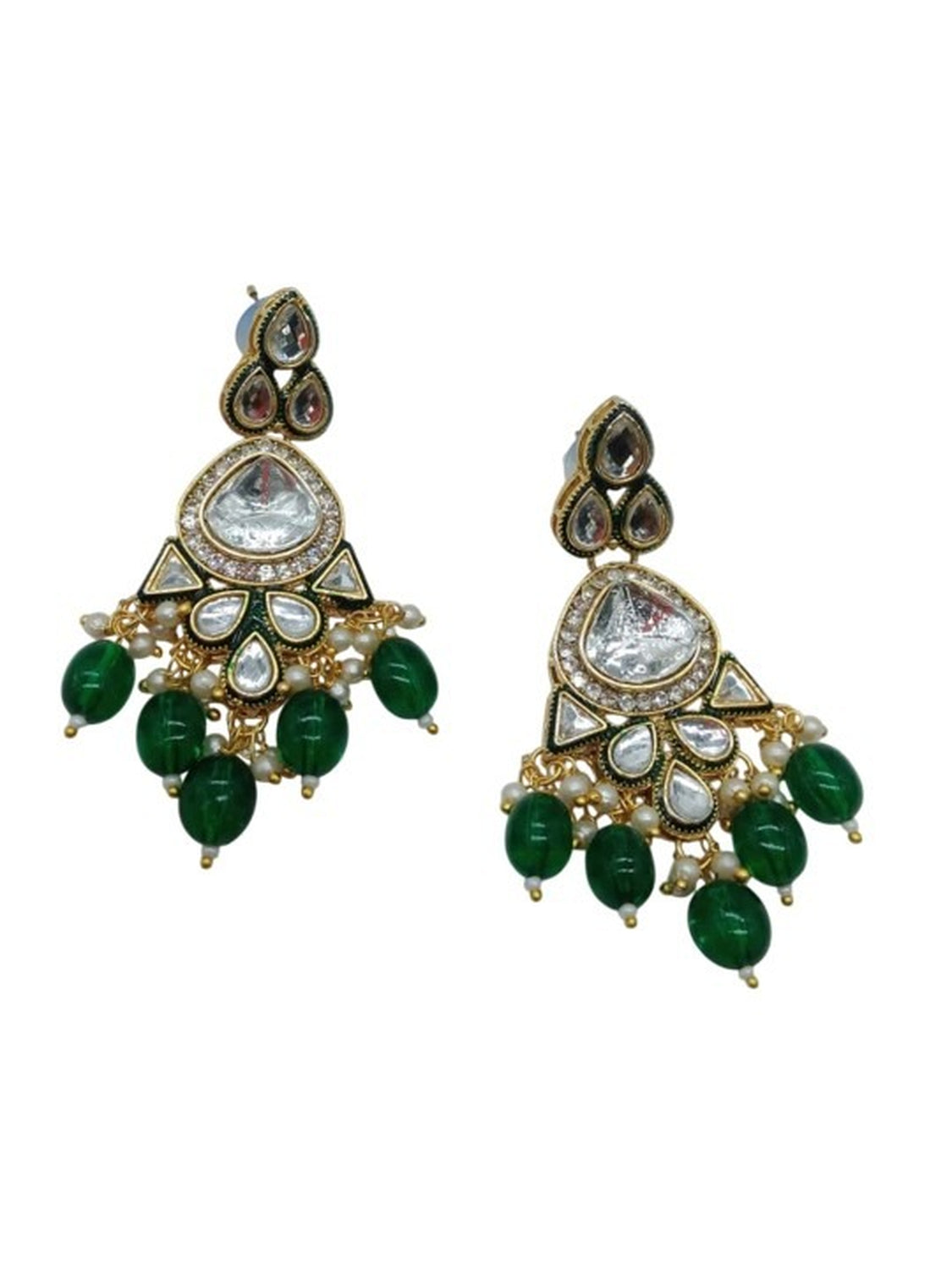 Jewel City Gold-Plated Kundan Choker Necklace Set with Beads & Maang Tikka | Traditional Indian Bridal Jewelry Color: Green Material: Alloy D...