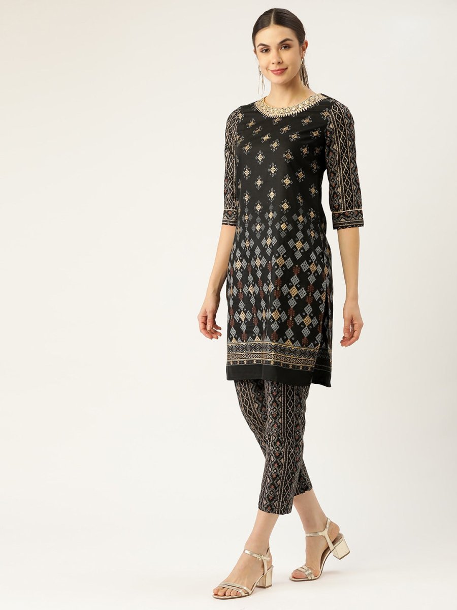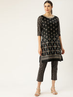 All About You Women Black & Golden Printed Sequinned Kurta with Trousers