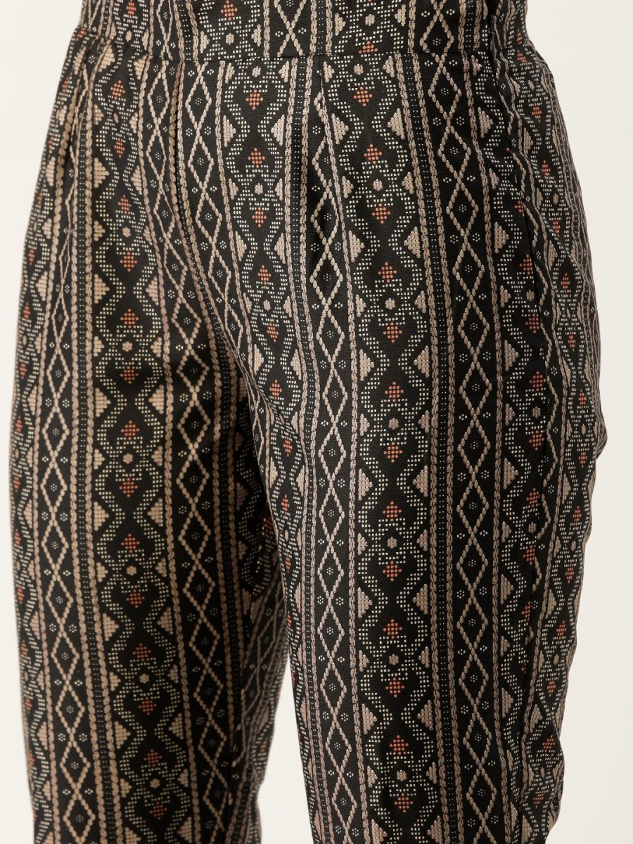 Black, golden and off-white printed Kurta with Trousers