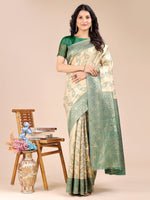 Astita Cream & Green Banarasi silk Woven Zari Work Traditional Tassel Saree - Default Title