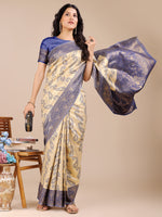 Astita Cream & Navy Blue Banarasi silk Woven Zari Work Traditional Tassel Saree