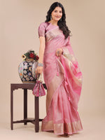 Astita Pink Organza Woven Zari Work Traditional Tassel Saree