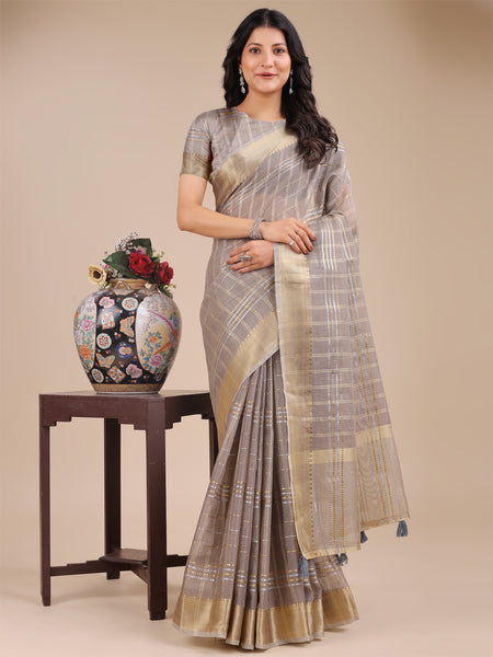 Astita Tan Organza Woven Zari Work Traditional Tassel Saree