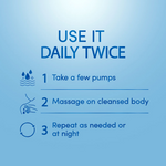 • Take a few pumps, massage onto cleansed body skin, repeat as needed